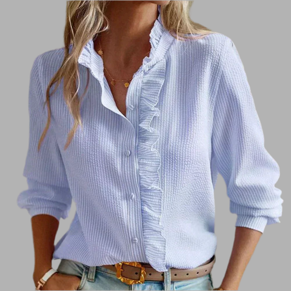 Ein Inbegriff von stilvoller Raffinesse – das Mady™ Rüschenhemd vereint klassischen Charme mit modernem Esprit.
